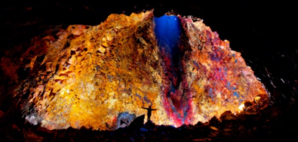 Your only mandatory companion: a local university geologist. (You’re imagining a more bookish Denise Richards.We won’t stop you.) Together, you’ll pile into an open-air gondola suspended above the mouth of the cone. Inside the car, you’ll descend down a wire into a narrow cave chute until you hit a rock floor the size of a football field, with red and yellow walls illuminated by studio lights.