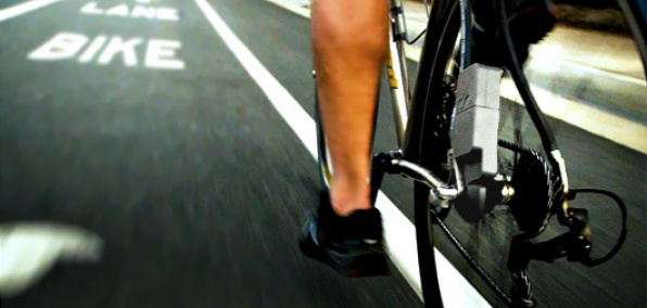 With this: The Atom, a little gadget that lets you harness energy from your bike and use it to power your devices, available for preorder now for November delivery.