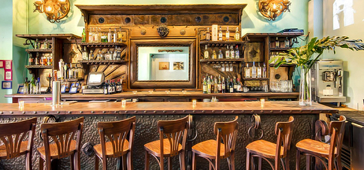 But they’ll serve all that everywhere. So keep walking back, past the colored rowing oars on the wall. Until you get to...