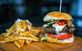 See that? (Of course you do.) That’s a brie-and-bacon-topped burger sidled up next to creamy blue-cheese fries. We’re looking out for your calcium intake over here.