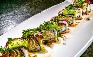Sushi happens, too. This particular piscine structure is the Maguro Lime Roll. It’s tuna topped with key lime and, as you can see, more tuna.