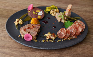 Pictured: miso chicken terrine, beef cheek rillettes, togarashi-maple salami and blood mortadella. Not pictured: your date’s very pleased face.