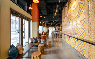 If you’re about to ask “Is that a giant tile mural of a stout woman feeding a wolf?” then yes. Much yes.