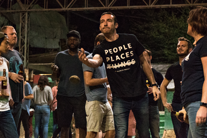 evening than outdoors, amongst friends old and new, on a sandy pitch in a not-central part of town, drinking