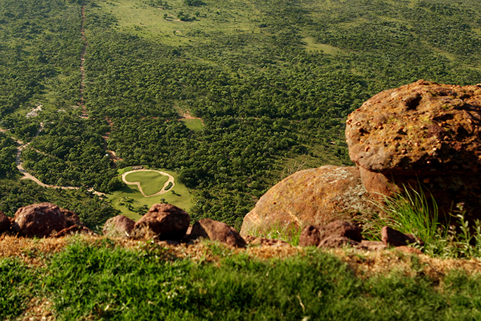 Why It’s So Difficult: Accessible only via helicopter, you’re teeing off from 1,300 feet above an Africa-shaped green 395 yards away. Needless to say, club selection will be tough.