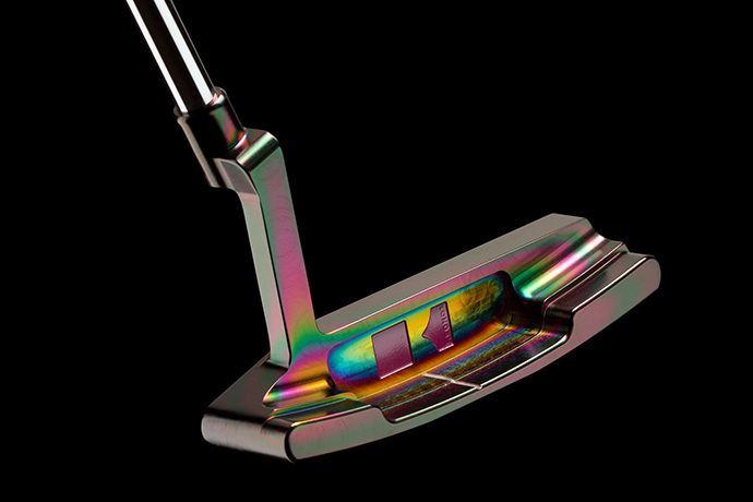 Milled from a single piece of carbon steel, the Kronos Hawaiian touch putter takes inspiration from Japanese pottery glazes. Each putter has its own unique color that is known to change over time, often becoming more vibrant with streaks of purple, green and blue. Aside from the eye-catching design, the Hawaiian touch offers a solid, balanced striking surface that knocks the ball like a Zen death punch. Such is the power of a rainbow.