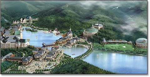 The Interlaken OCT Hotel opened last month as a full-scale Swiss village...just outside of Hong Kong. Set on picturesque (albeit manmade) Lake Interlaken, the streets are lined with Alpine-style "gingerbread houses," as well as a 10,000-square-foot indoor-outdoor spa and championship-level golf course. Though next winter won't bring snow to these mountains, it does promise a waterfall theme park (with the world's largest flume ride) and a cable car to the mountaintop restaurant, with first-class cuisine and views of the Alps—er, subtropical tea plantations.